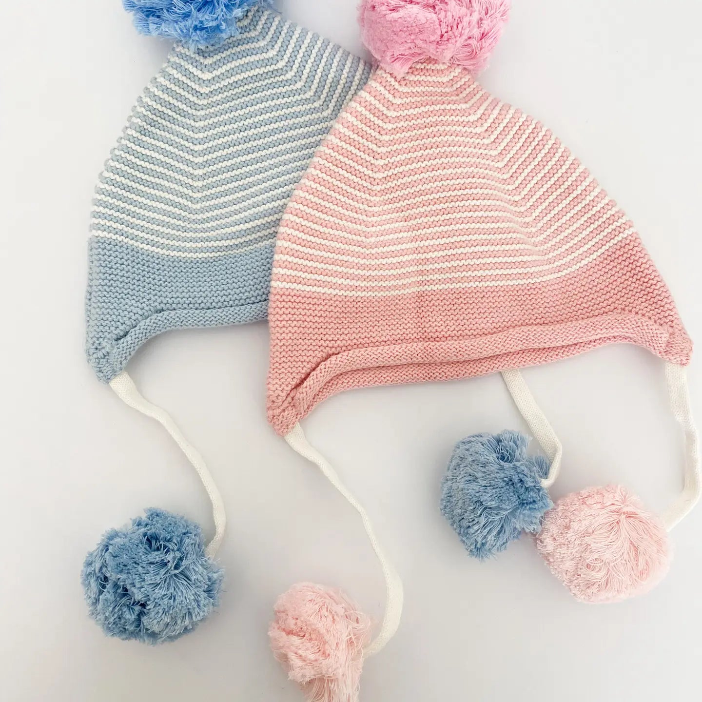 They are 100% soft knitted cotton designed to be a must-have closet staple. We adore these because they are such a classic look, but also extremely functional with their full ear coverage and "grow with you" sizes.